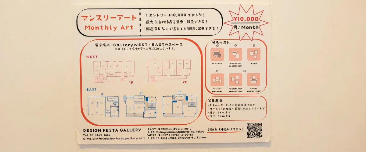 「展示したいけど原宿は遠い…」「在廊する時間がとれない…」そんな物理的に行くのが難しい人には、マンスリーアート(サブスク型展示サービス)が便利です。