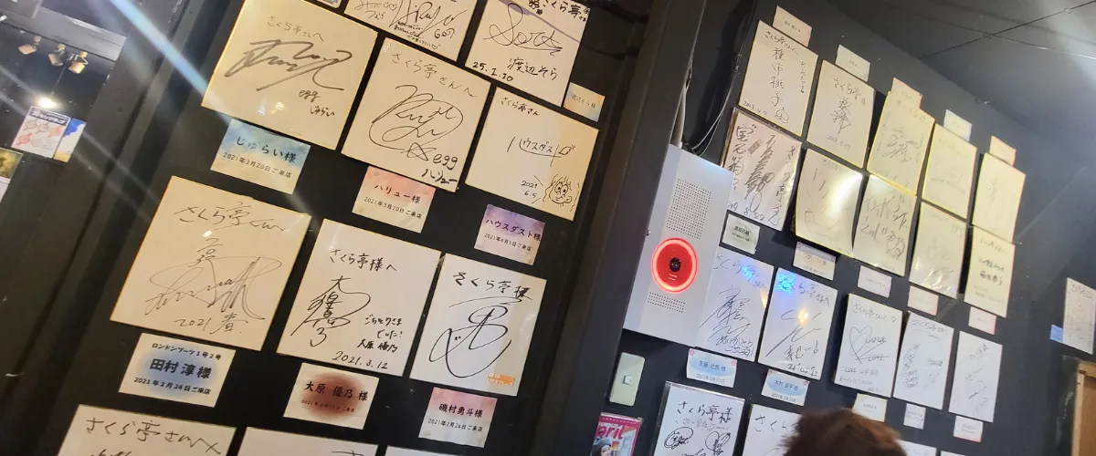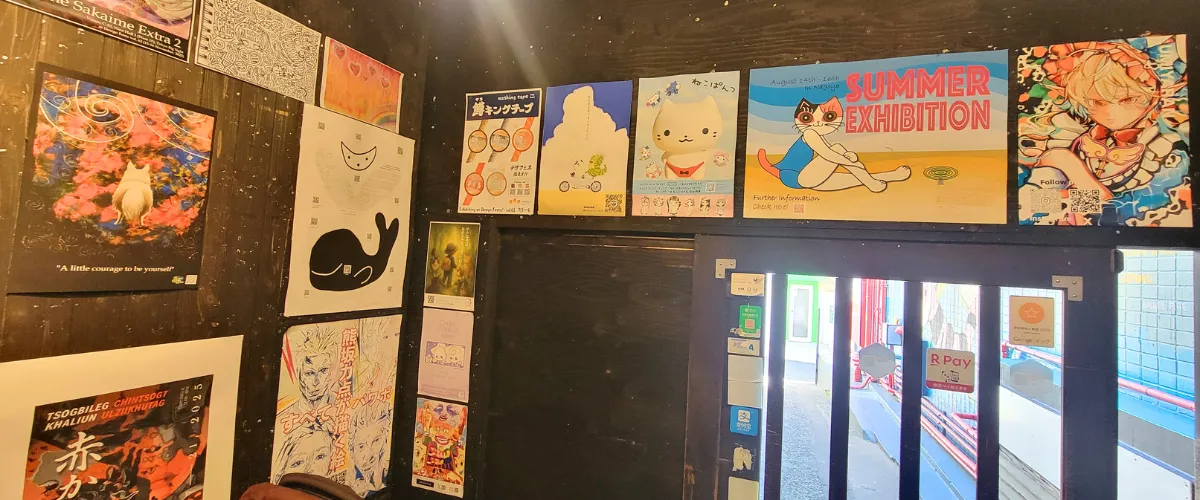原宿さくら亭のエントランスには、ポスターの展示コーナーがあります。